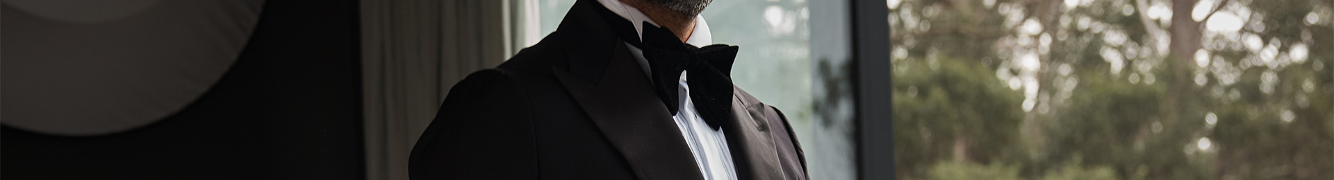 • Pair with a crisp white tuxedo shirt and black bow tie.